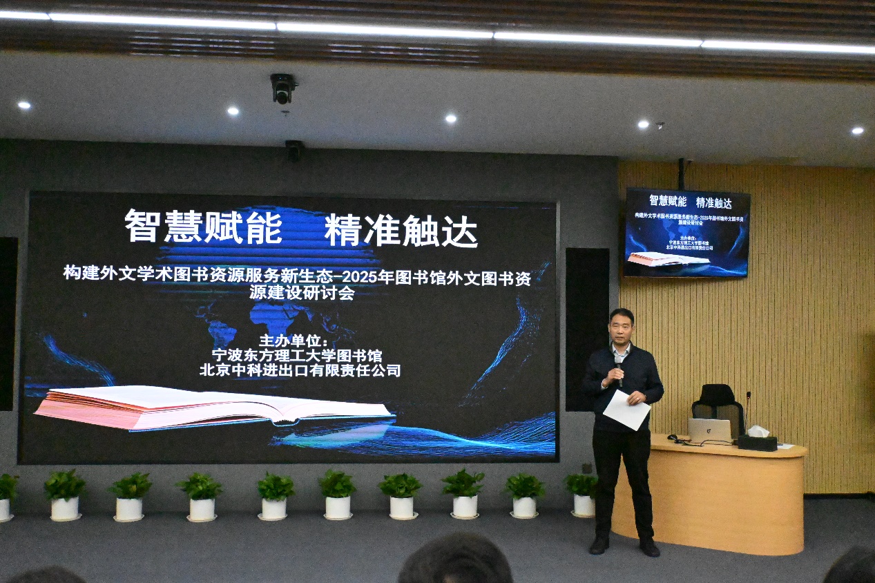 2025年11月12日至14日,由宁波东方理工大学图书馆与北京中科进出口有限责任公司联合主办的“2025年图书馆外文图书资源建设研讨会”在浙江宁波圆满举行。